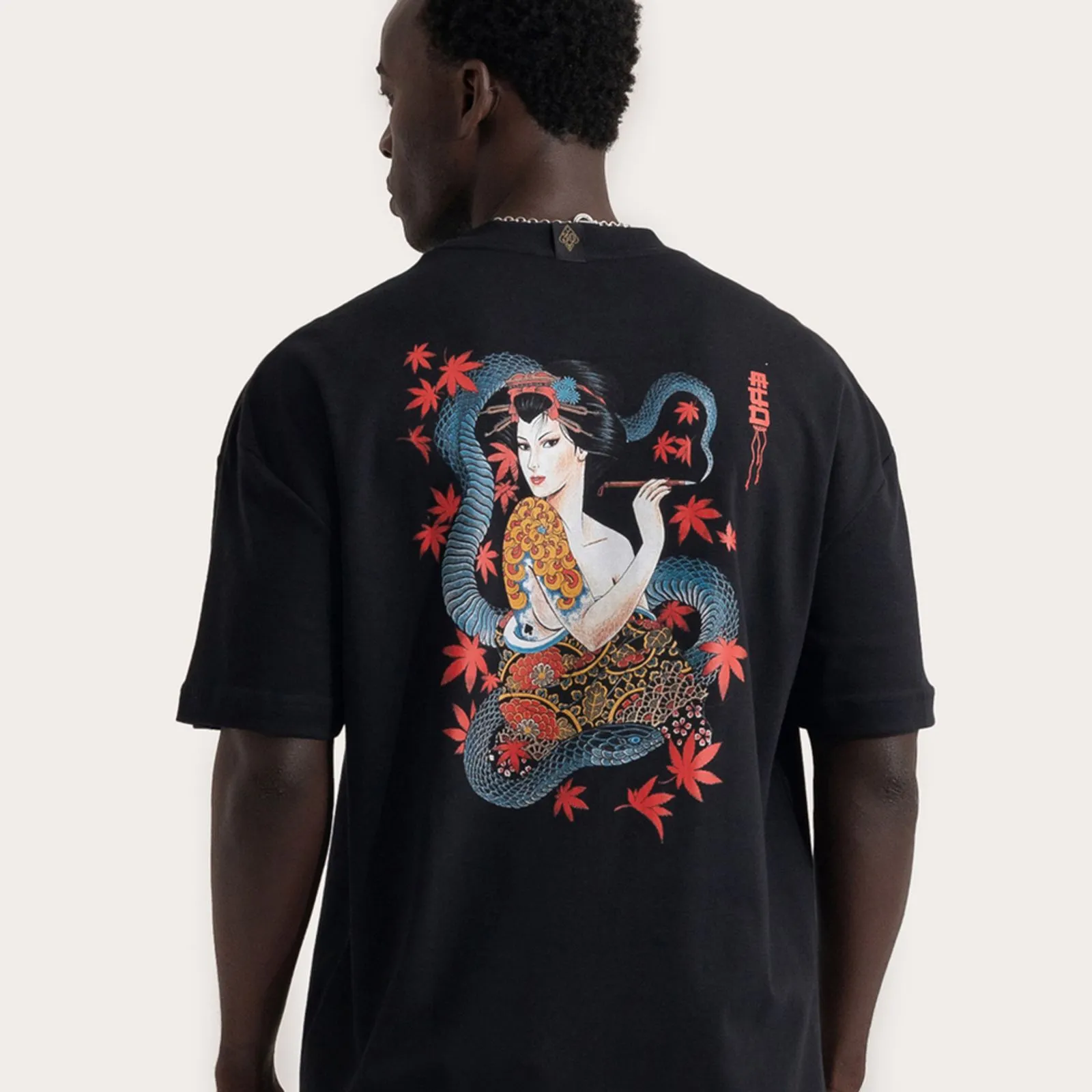 · Estampa grande Gueixa localizada nas costas.