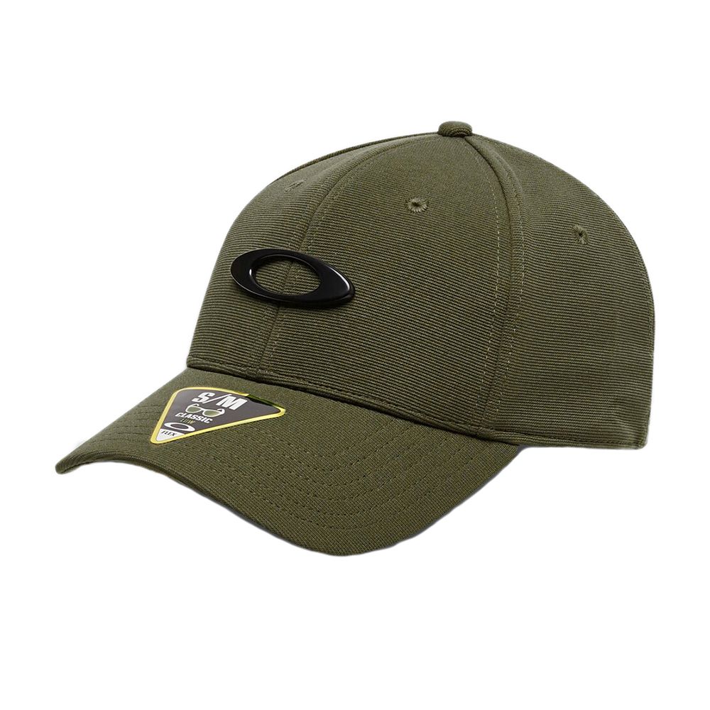 O Boné Oakley Tincan - Fechado com aba sutilmente curvada, logotipo metálico na frente, bordado atrás, faixa customizada na testa para absorver umidade e ilhós para ventilação.